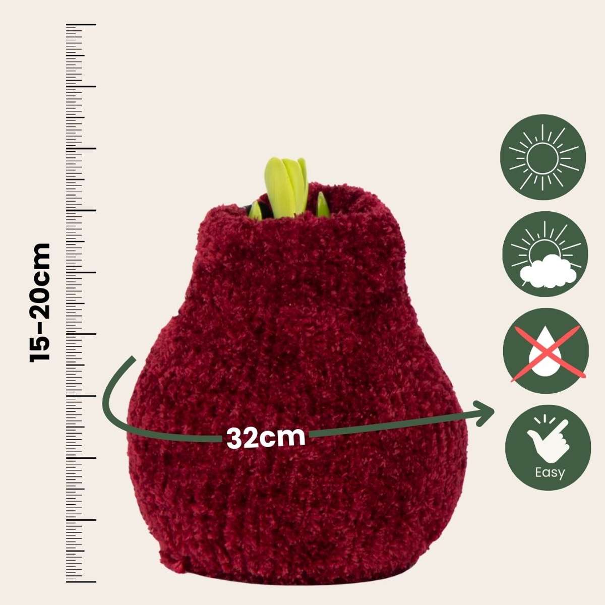 Bring the winter atmosphere into your home with Amaryllis! The beautiful and elegant red flowers steal the show in your winter interior. The beautiful flowers have a flowering period of 3 to 6 weeks. The bulb is about 32cm in circumference and comes in a soft teddy jacket.