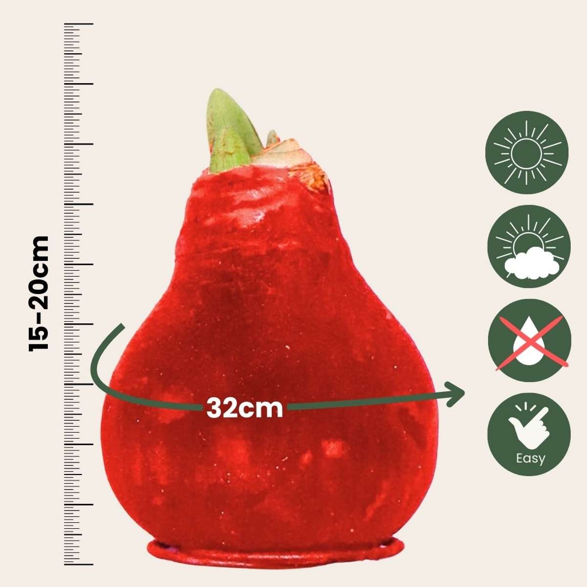 Bring the winter atmosphere into your home with Amaryllis! The beautiful and elegant red flowers steal the show in your winter interior. The beautiful flowers have a flowering period of 3 to 6 weeks. The bulb is about 32cm in circumference and comes with a glamorous red velvet wax coating.