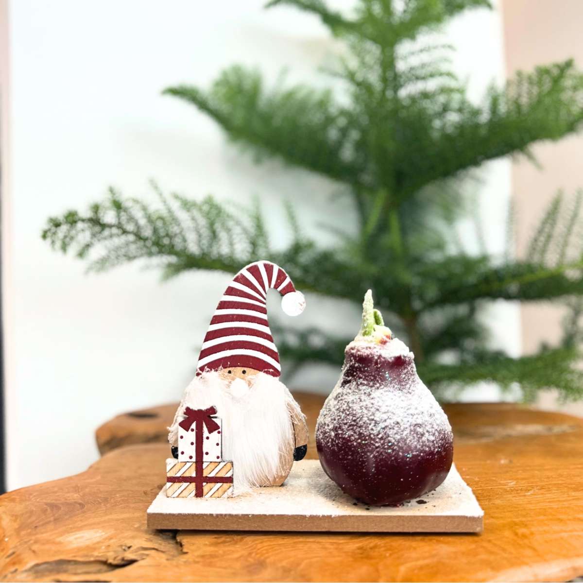 Bring warmth and festive cheer into your home with the Amaryllis Christmas Figures Mix! Each bulb is uniquely decorated with a snowy wax layer and paired with a charming wooden Santa, gnome and reindeer. The flowers bloom for 3 to 6 weeks, filling your home with colour and joy. A unique and festive gift set that perfectly captures the magic of the holidays.